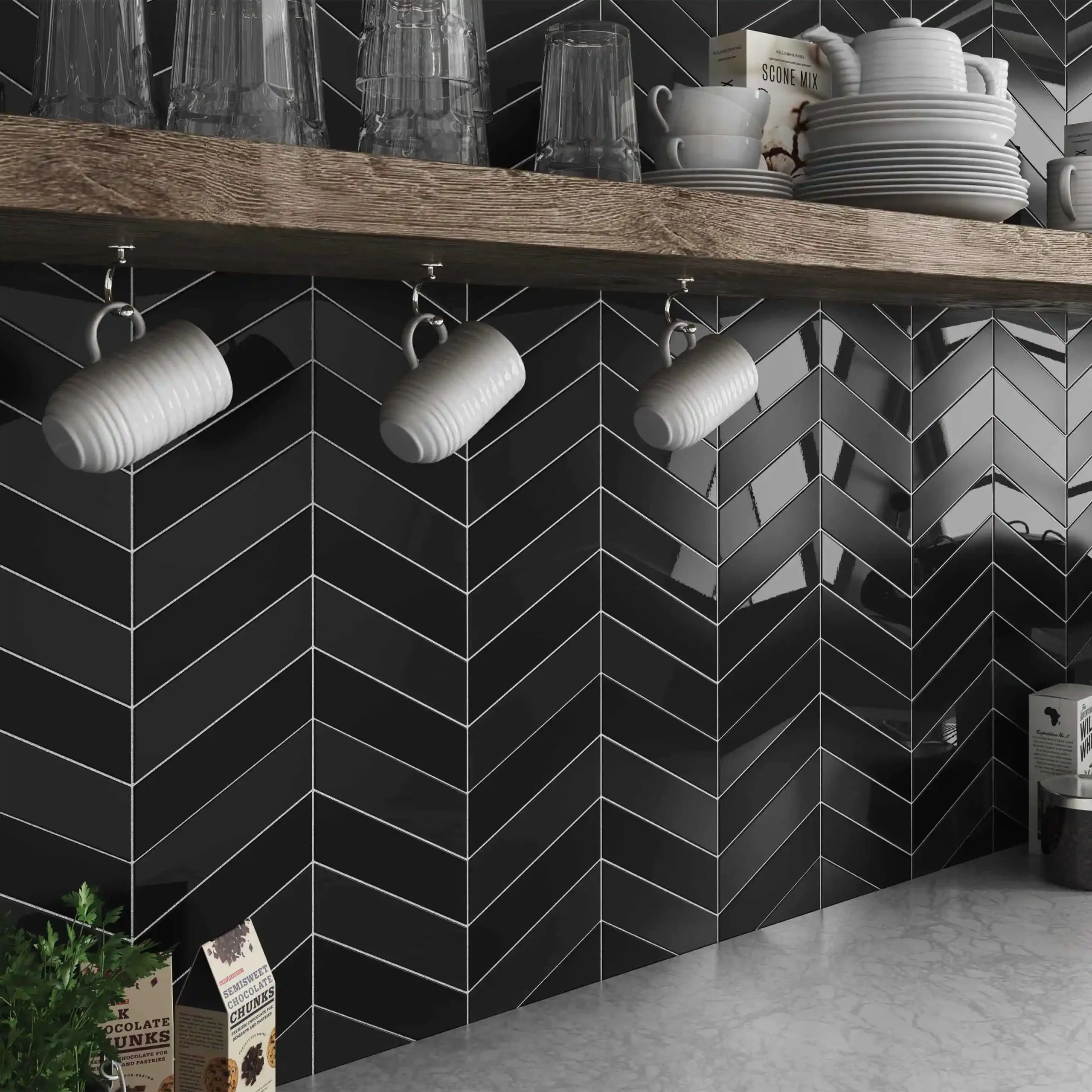 Classics never go out of style. The sharp angles of Chevron tiles create a fun zigzag pattern that’s full of movement. Spruce up a monochromatic space or go bold by applying a contrasting colour.