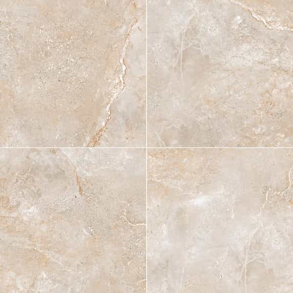 Porcelain tiles from the Gemstone series are a combination of marble, sand, limestone, and talc reminiscent of precious stones. These tiles are designed for wall and floor applications and can withstand heavy traffic, making them ideal for both commercial and residential settings.